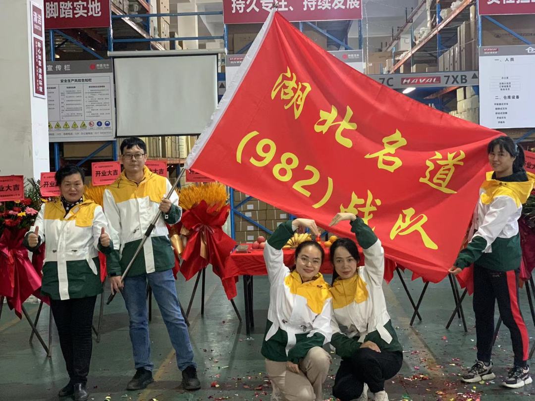 考慮到當(dāng)?shù)胤酪咴颍敬渭舨蕛x式一切從簡但不失喜慶。集團公司汽車備件產(chǎn)業(yè)鏈負(fù)責(zé)人-長沙鴻道汽車有限公司曾慧純總經(jīng)理及邀請的就近幾位嘉賓出席了開業(yè)儀式,還有湖北名道團隊等共同見證了本次長城汽車備件-武漢倉的盛大開業(yè)。