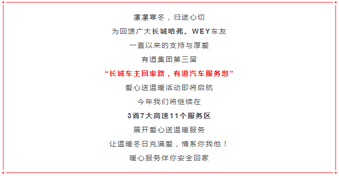 長城車主回家路,有道汽車服務(wù)您 | 第三屆愛心送溫暖活動(dòng)即將啟航