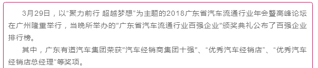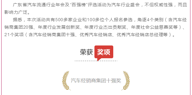 【喜訊】有道集團(tuán)榮獲“廣東省汽車集團(tuán)經(jīng)銷商十強(qiáng)”獎(jiǎng)